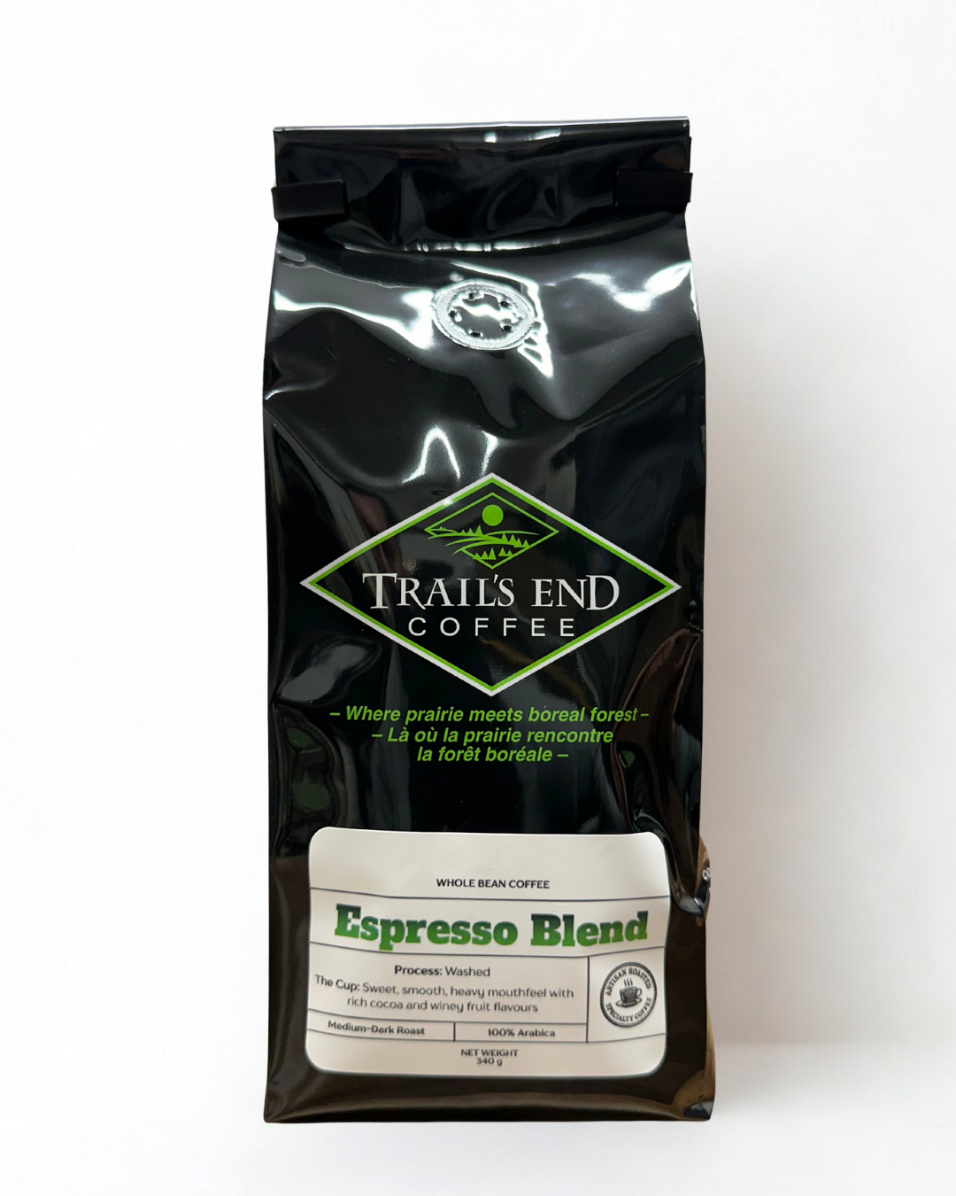 Our Trail’s End Espresso Blend is a signature blend of Arabican beans.